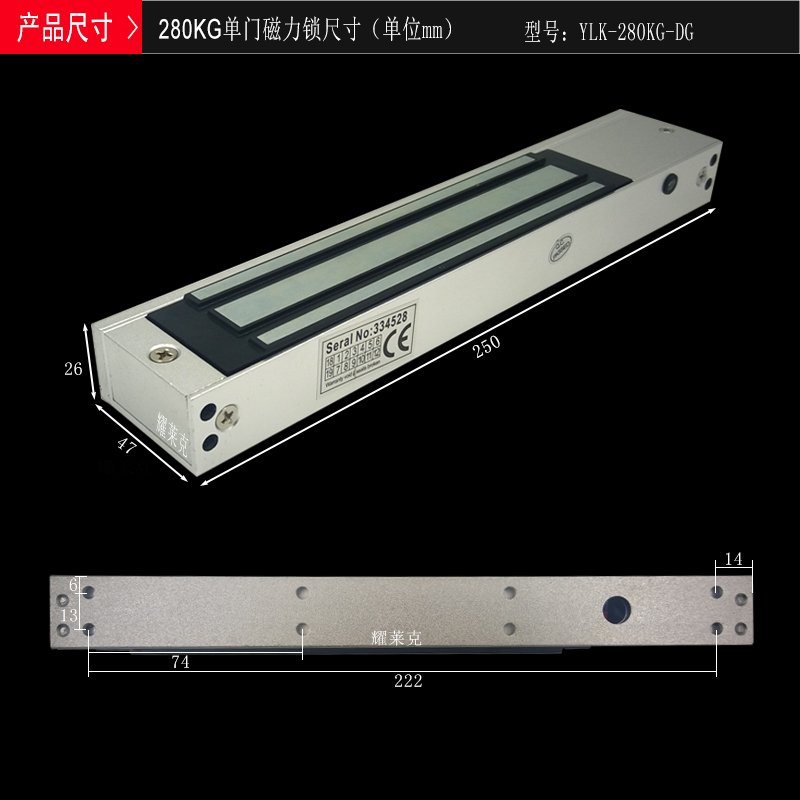280kg单门磁力锁 玻璃门电磁锁 明装磁力锁