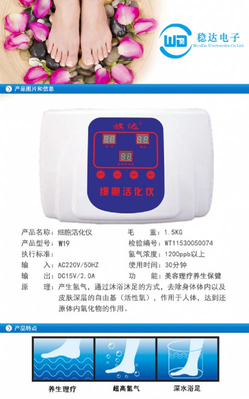 制氢理疗仪是由广州市稳达电子技有限公司经过十年潜心研发出来的国内*一款进行泡浴的大功率氢分子仪器,能快速的分解出大量的氢分子,溶解到泡浴的水中,由于氢气分子体积非常小,渗透性很强,人们在泡浴或泡脚的过程中,氢分子通过皮肤渗透到身体氧化的细胞内.