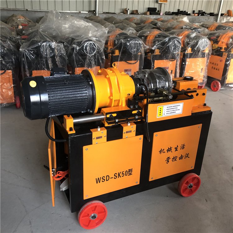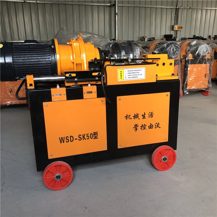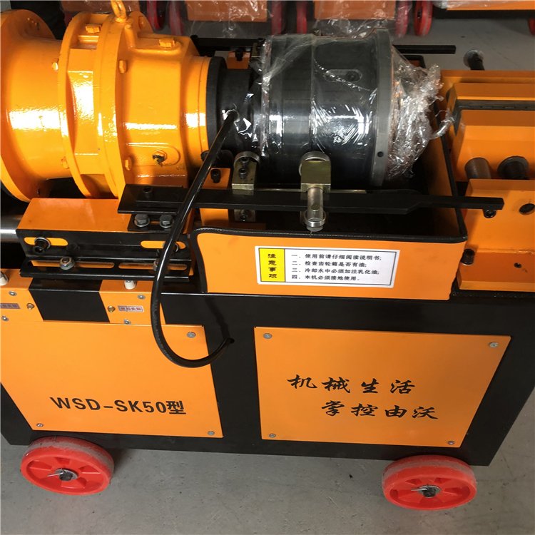 钢筋套丝机是近年来广泛用于建筑行业的一种钢筋加工机械。由机架、夹紧机构、进给拖板、减速机及滚丝头、冷却系统、电器系统组成。