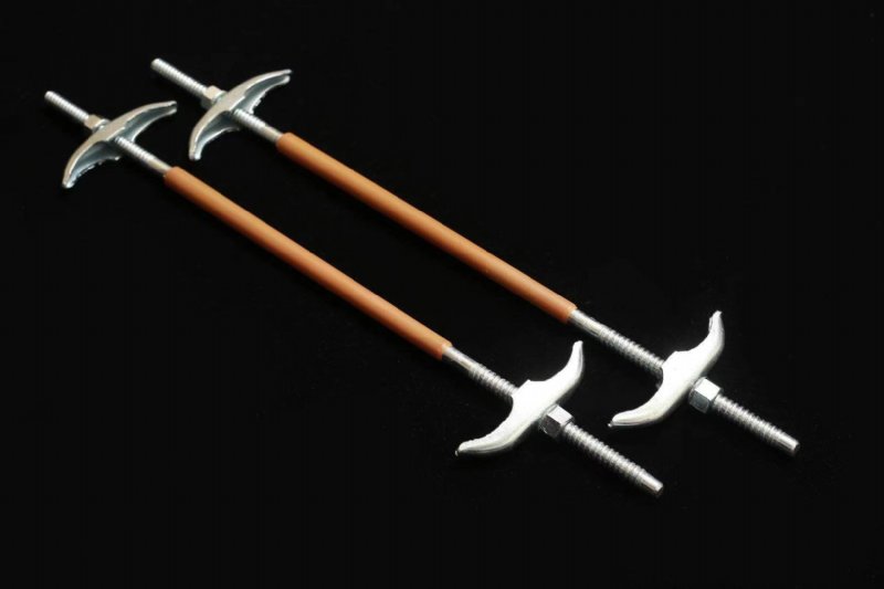 产品规格2: 长度750mm,丝牙直径13Mm;中间材料段长度400mm,小头直径15.5mm,大头直径20mm;本品适用于250mm-350mm厚度的墙体施工。