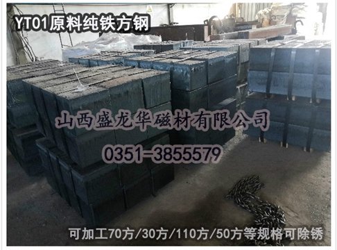 C:0.002以下,Si:0.008以下,Mm:0.02以下、P:0.005以下、S:0.004以下,是做各种熔炼的*佳纯铁,硬磁原料纯铁主要用于熔炼纯铁,所以出厂只保证Q/TB3044-2077的化学成分,尺寸公差一般不予保证,原料纯铁的表面允许存在≤3Mm的裂纹缺陷。其中产品纯净度及各项指标以YT01为*好,YT01成份纯净,性能优良,经济实惠。