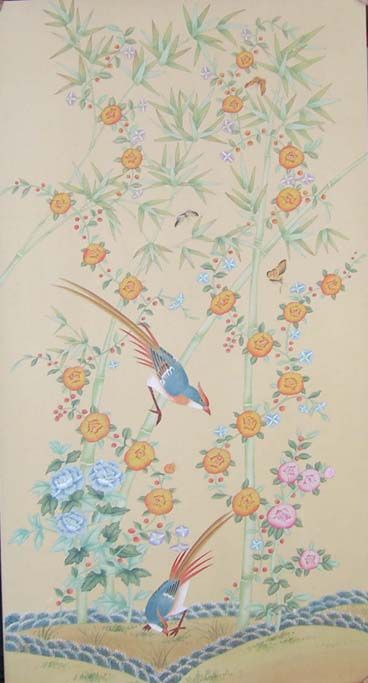 特点:丝绸壁纸以精致而复杂的手工绘制为特点,整套流程全手工制作。