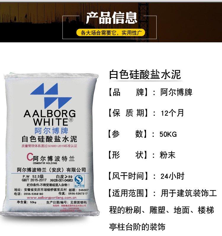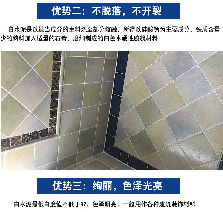 阿尔博牌外墙饰面白水泥 用白色硅酸盐水泥熟料磨制而成的一种高白度,细度优的墙面装饰材料,饰面光洁,施工方便。