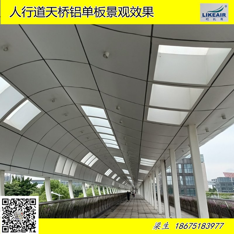 4、由于具有质量轻、可设计性强、设计简洁、安装工期短等优点。天桥桥梁上的辅助装饰面主要包括在原有桥梁上增加的整体结构外装饰面使用铝单板包边,人行道天桥或者自行车通道吊顶,桥栏杆广告牌、路标牌、照明底板等。