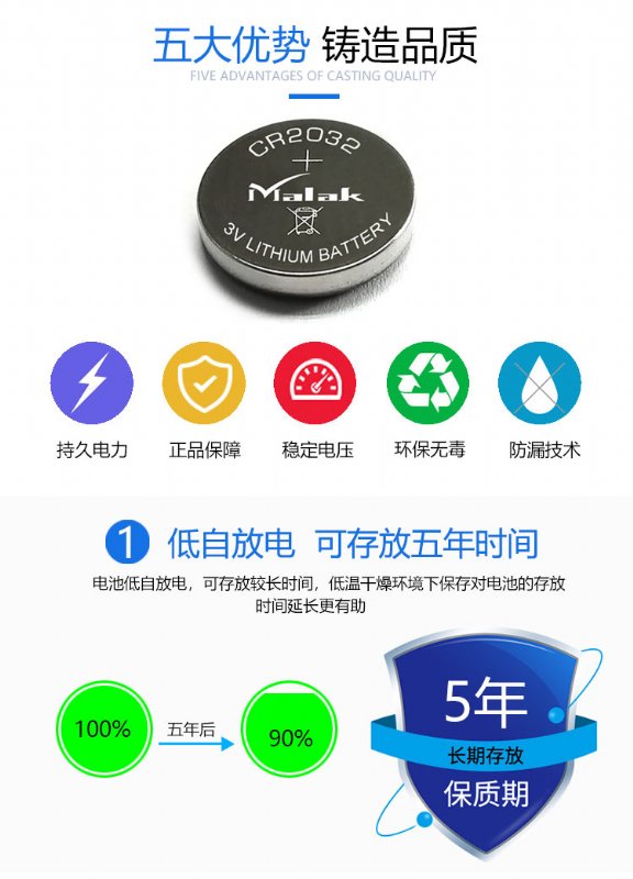厂家直销迈洛克纽扣电池 迈洛克CR2032纽扣电池