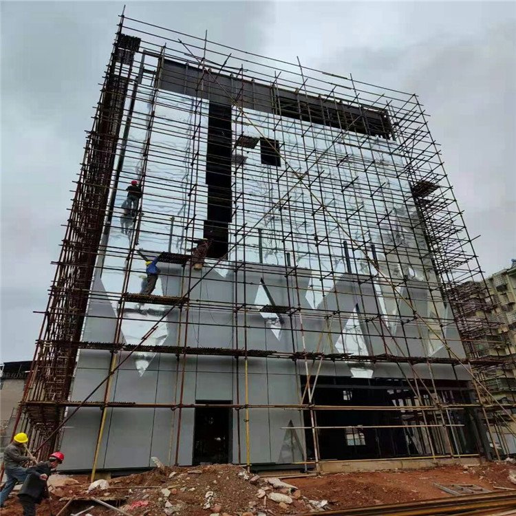 外墙氟碳漆铝板,安装方法:先在墙体做好预埋件或膨胀螺丝,根据同一水平高度装好收边角;按楼层的不同高度要求用不同的骨架,如:40*40mm,50*50*5mm钢管或角钢固定,螺丝直接固定等,根据不同的产品有不同的固定方法;把预装钢架连同铝板固定在上面,间距根据板型大小来确定,全部装完后必须调整至水平;将铝板按顺序固定在钢管上就可以。板面安装时须要带手套,如不慎留下指印或污渍,可用洗洁精清洗并抹干即可。 - 广东传喜金属制品有限公司
