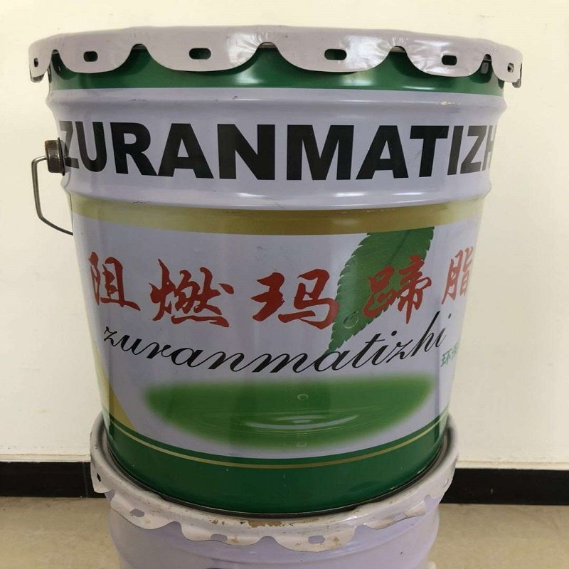 沥青阻燃玛蹄脂是采用石油沥青为基料,采用化学黏结剂、成膜剂、增稠剂 纤维稳定剂、砂粉及少量的细集料组成的沥青玛蹄脂,填充间断级配的粗集料骨架间隙组成一体的沥青混合料。具有高含量粗集料、高含量矿粉、较大沥青用量、低含量中间粒径颗粒的组成特点。高含量的粗骨料在混合料中颗粒面与面直接接触、相互嵌锁构成的骨架直接承受了荷载作用,这种骨架对温度敏感性小。含量较高的矿粉与沥青形成粘聚力***的胶凝状物―――玛蹄脂,使得混合料的整体力学性质提高。这两方面的作用使混合料具有足够的竖向与侧向约束,在车辆荷载的作用下,不产生或只产生微小的性变形。它具有气密性、防水性、防冻性、不易开裂老化、常温下可以冷施工等特点。广泛应用于防潮层,防水层;道路桥梁伸缩缝,及路面养护维修等行业。