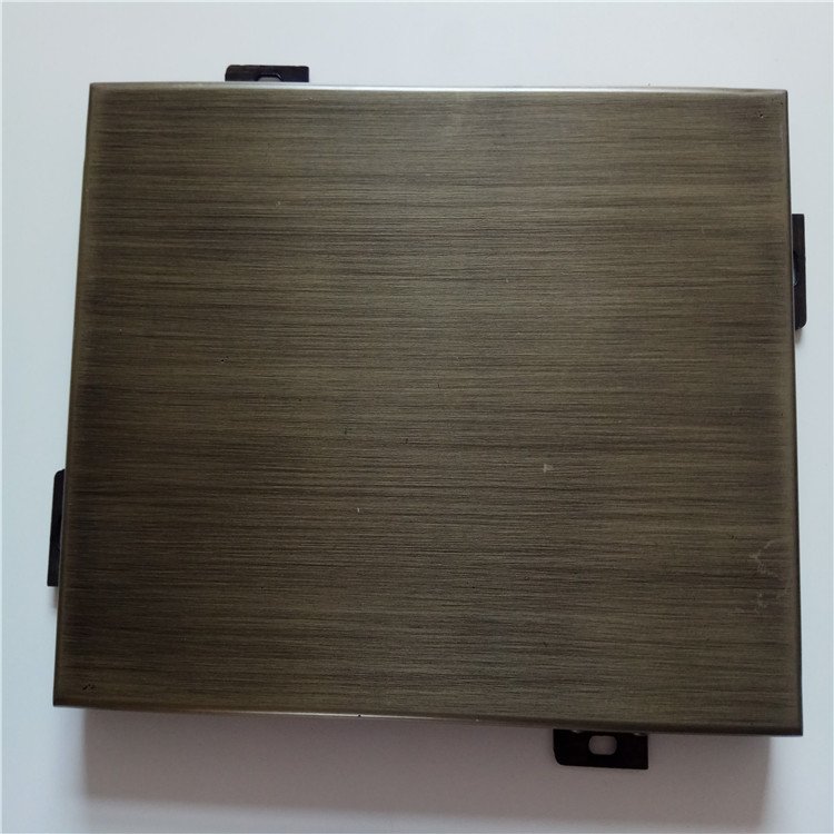 拉丝面装饰铝板,单层板面厚度,1.5,2.0,2.5,3.0,3.5,4.0mm,装饰立体感好,也可加工成弧面或造型装饰面,板的周边都折边有1-3公分,再焊接成一个固体,装上角码喷涂烤漆好颜色可以安装了,角码的用途是方便于安装固定,板面常规尺寸一般是,1200x2400mm,1220x2440mm,尺寸都可以按场地分布而定做,大板的背面每隔1.2米就附加一根加强筋,有注加强板面的立体效果保持装饰长久不变形。