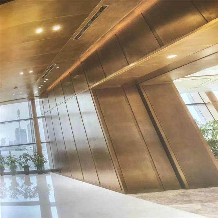 仿古铜拉丝铝板,金属板和各种玻璃。铜拉丝铝单板与主体结构的连接多采用柔性连接,即用螺栓通过角钢,将幕墙挂在主体结构的外侧,形成挂墙,即为幕墙。铝板幕墙之所以有生命力,是因为近年来各国都在致力于新技术、仿古铜拉丝铝单新材料的应用。同时,铝板幕墙之所以能在很短的时间内在建筑的各个领域得到***的应用和推广,是因为它具有其他材料无法比拟的功能和特点:铝板幕墙打破了传统的窗与墙的界限,巧妙地将它们融为一体。