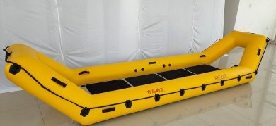 1、双面镂空设计冰面救生筏,充气使用。自身浮力大于等于 2000 磅。适合冰面、水面救援用,可折 叠,底部坚硬耐磨。