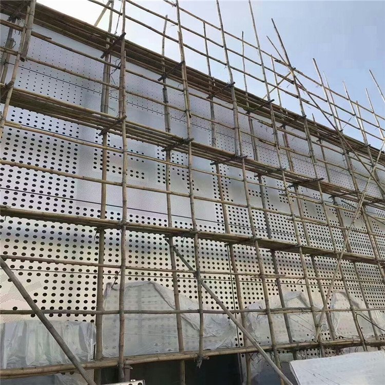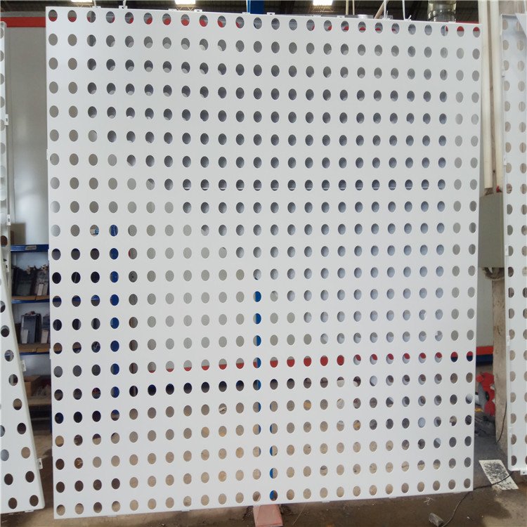 铝合金穿孔墙板,板面孔的排列方式有很多,有直排孔,对角孔,艺术孔,花型图案孔等,孔形有方孔、圆孔、六角孔、梅花孔、葫芦孔等,根据各种场地的设计需求按图纸生产,穿透性的孔有半透明的装饰效果,能把建筑装饰的美观时尚,并且可以使建筑物更显具高贵典雅的风格。