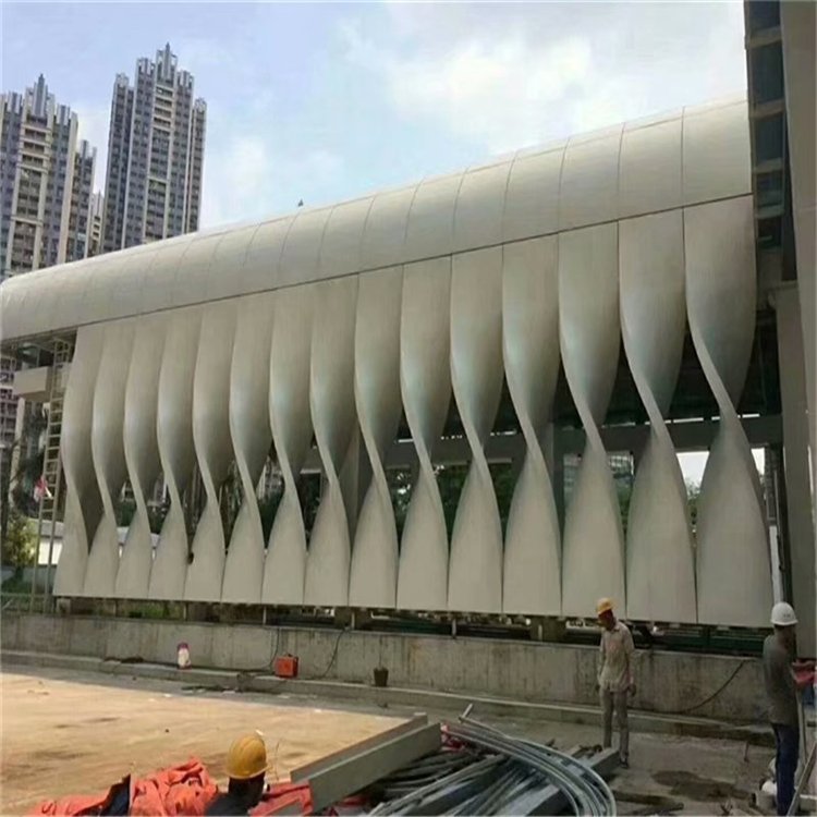 麻花形外墙装饰铝方通,材质重量轻、加工成麻花形状的铝方通立体效果更强、具有防水、防污、防火、防蚀、耐用不生锈的性能、适用于室内外装饰使用,能够满足高层建筑的装饰需求,产品是按实际展开面积计算价格,加工有一定的难度损耗也比较大造价要比普通的造型材料要髙些,板面的宽窄都可以按要求定做。