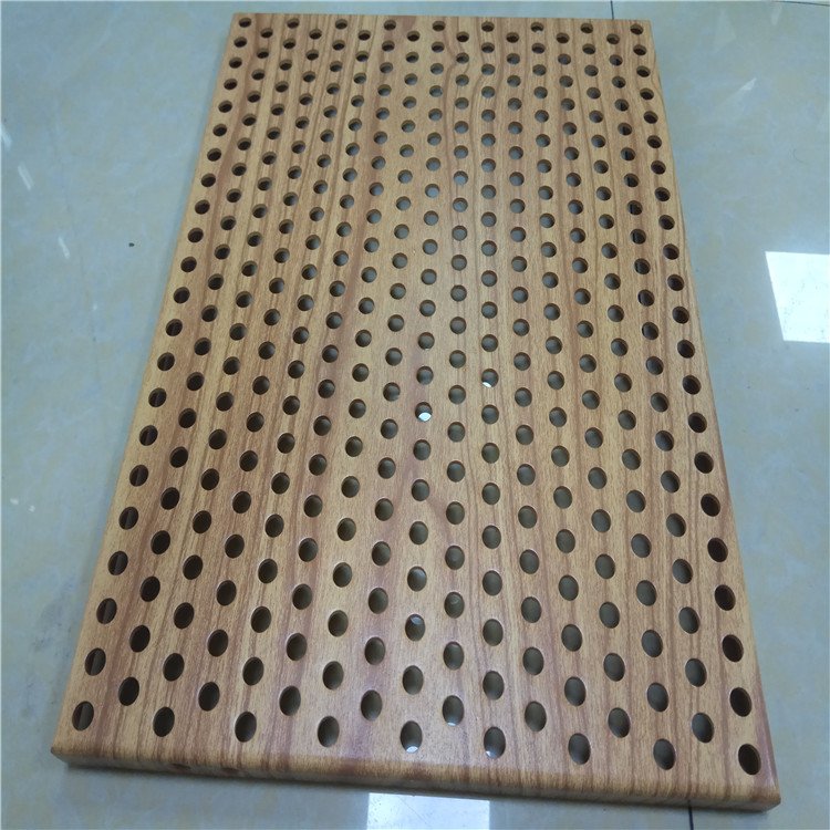 木色镂空铝板,构造主要由面板挂耳组成,在具要求时面板背面可增亚克力板材料,挂耳可直接由面折弯冲压成型,也可在面板上铆装角码成型,面板后背面的焊接螺钉与面板连接在一起从而形成一牢固的整体,增强了铝单板的强度与刚度。木纹纹理有平纹和凸显手感的3D纹路,使用中保证了在长期使用中的平整性及抗风作用。