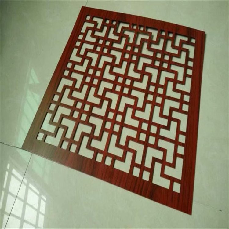 木色镂空铝板,铝板材质性能,木色转印铝板材质重量轻装饰给建筑带来负荷小,具备有防火 防潮 不生锈的性能,木纹颜色纹路清晰可以按需求定做,红、黄、黑、白、蓝、紫、等,仿木纹路有,胡桃木、柚木、檀木、樱桃木、橡木、梨花木、松木、樟木、竹纹等 可定做,不受紫外线、湿度、气温和天气腐蚀,**褪色;板体轻巧、安装结构简便,更具有良好的抗弯曲强度及优良的抗风压性能。