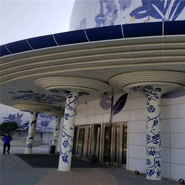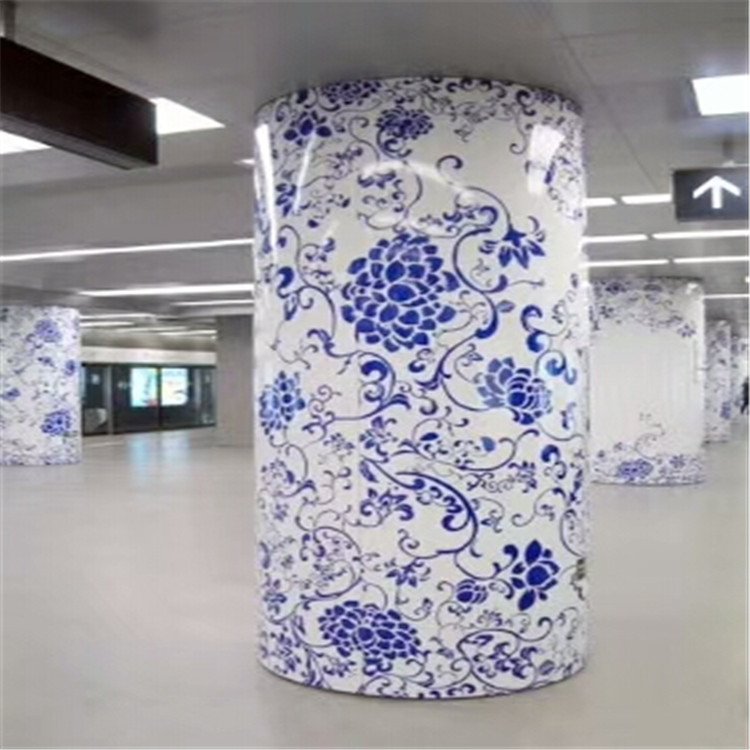 仿青花瓷包柱铝板,有弧形铝单板、方形包柱铝板和圆形包柱铝板工艺包含有缝和无缝两种,可以根据外形美观,可按客户要求定制各类花纹图案,包柱铝单板的造型取决于柱子的形状,如圆形柱子使用的是弧形铝单板,方形柱子使用的是方形铝单板。所以如果在建筑中有对柱子进行装饰的,包柱铝单板则是很好的选择。