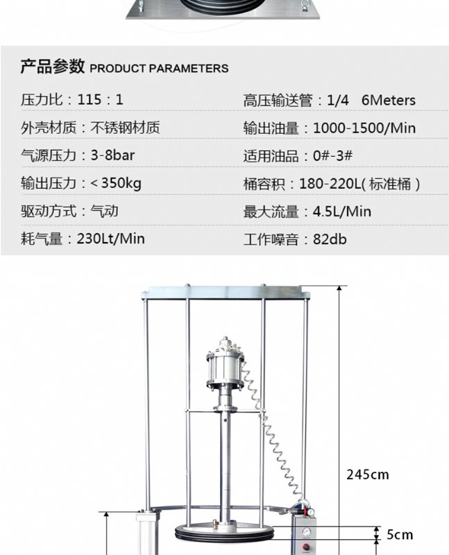 气动黄油机双立柱超大流量200L油脂加注机50加仑高压定量黄油泵头