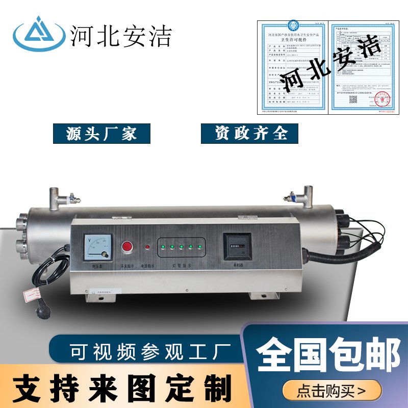 定制 安洁紫外线消毒器水处理设备自来水管道式小区泵房二次供水杀菌器