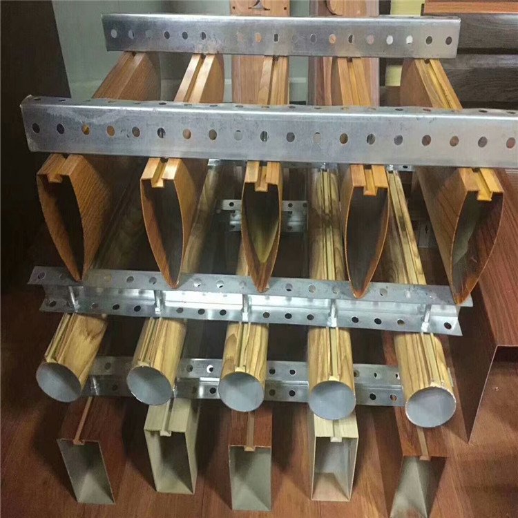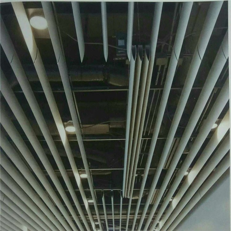 型材子弹头挂片及卡式龙骨组成,装卸灵活,其维修限制较少,可以选择不同的叶片高度配以合理的间距,有隔音、散热、防风的功能,圆边式的线条明快柔和,为整个空间带来和谐柔美的现代感,其外观简捷高雅,造型美观。
