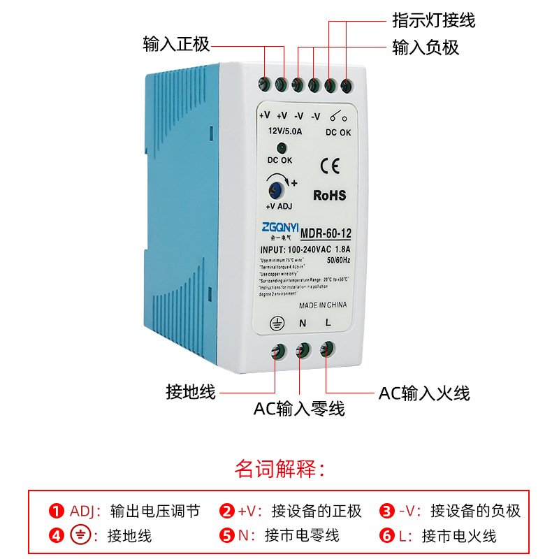 MDR开关电源导轨式电源12V塑料外壳MDR60W