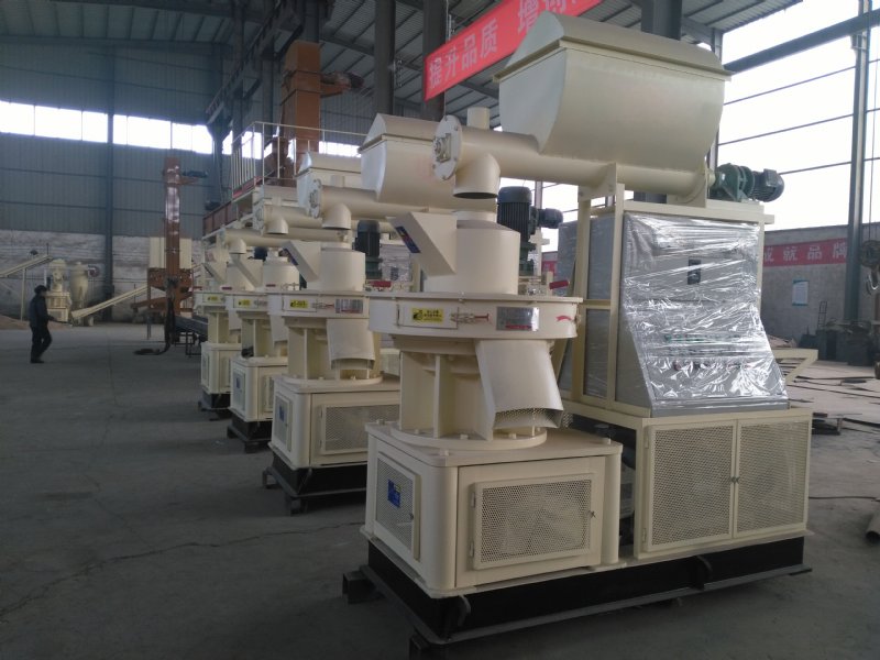 生物质颗粒机模具向上,结构合理,垂直进料,利于散热:模具向上,垂直进料到制粒室,使物料直接到位,不需要其他助力装置。而普通环模颗粒机进料口侧装,比重轻的物料进制粒室困难,需要特别装置 迫推进且不均匀, 主要是制粒室不能散热降温,制约了传动系统(齿轮、轴承)的寿命。平模制粒机则两种结构,虽能垂直进料,但都存在诸多难以解除的弊端。