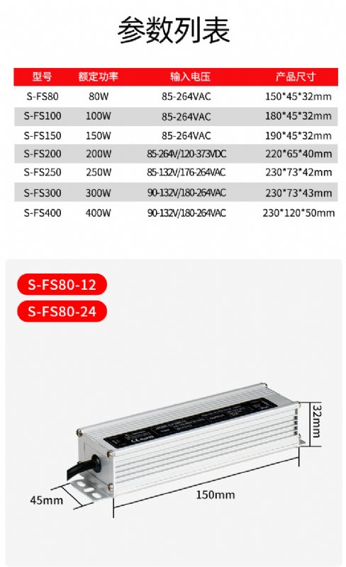 S单组系列:产品特性全球通用全范围交流输入电压,抗干扰性能好,可靠性能高,直流纹波小,工作效率高,工作温..