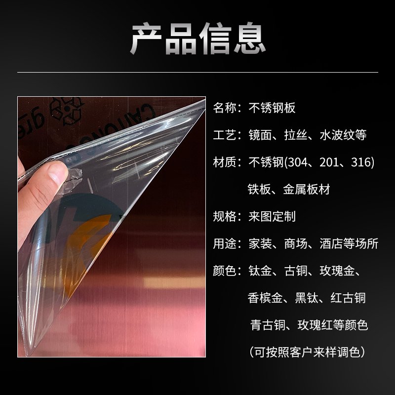 电镀拉丝玫瑰金不锈钢板加工定做304激光切割黑钛装饰条镜面钛金