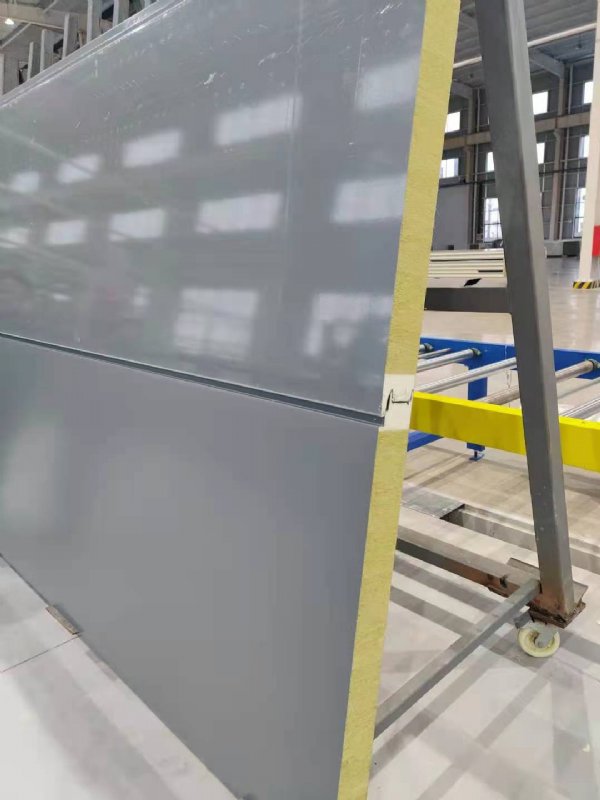 聚氨酯双侧封岩棉夹芯板采用了流水线生产工艺,从而利用了聚氨酯产品优异的防水性克服了岩棉易吸水潮解的缺点,在物理性能上有效延长了产品的使用寿命