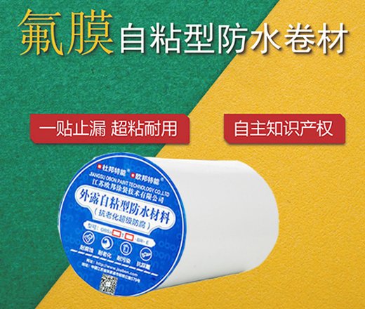 外露自粘型氟膜丁基防腐(水)卷材是以氟碳耐候膜为覆面材料,以改性丁基橡胶为粘结材料,并覆以隔离材料而组成的本体自粘防水卷材。可采用自粘或湿铺法施工。