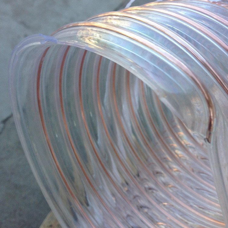 特性:采用聚氨酯(TPU)材料、以坚固弹性镀铜钢丝包覆于管壁极度抗磨损、耐高压、真空和抗压缩,高轴强度优越,令输送物质流畅,良好的抗化学性,弯曲半径约等于3倍外径,比普通PVC软管、橡胶软管耐磨高10倍以上,是PVC、橡胶软管的替代产品。