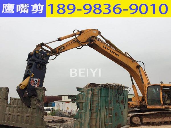 液压鹰嘴剪安装在挖掘机上,可以多方位工作,快速拆解重型废钢废铁,报废汽车,钢构拆解,拆船工程,桥梁拆解的钢铁剪切。品质鹰嘴剪认准东奕机械,挥洒自如,移动方便,速度快效益高,将替代鳄鱼式剪切机,龙门重废剪切机,打包剪切机等不能移动的缺点,也降低了投资成本,安全性提高了,液压鹰嘴剪可以在任何场合灵活使用。 - 广州东奕工程机械设备有限公司