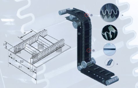 大倾角裙边隔板输送带是由基带、挡边、横隔板3部分组成。挡边起防止物料测滑撒落的作用。为便于绕过滚筒,档边..