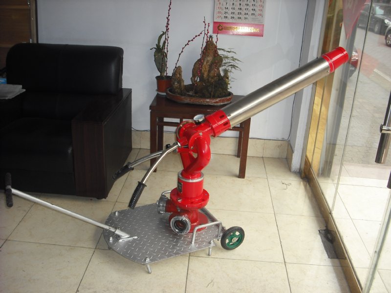本产品用于扑灭一般固体物质火灾和油类火灾,也用于油罐的冷却降温,更适用于火场离水源较远,各种大型消防车无法到达的狭小空间地带进行快速灭火.为抢救生命财产赢得宝贵时间. 结构特点:该移动式消防炮主要由移动地盘、拖把、进水管、回转体、炮头等机构组成。配有两个直径65进水口。在同一压力下,水炮的流量可调整,并可实施直流至90度水雾射流的无极调节,起到更好的灭火降温效果。因此,该炮无论什么火灾,都具有很好的灭火性能。 - 济南爱尔玛消防科技有限公司