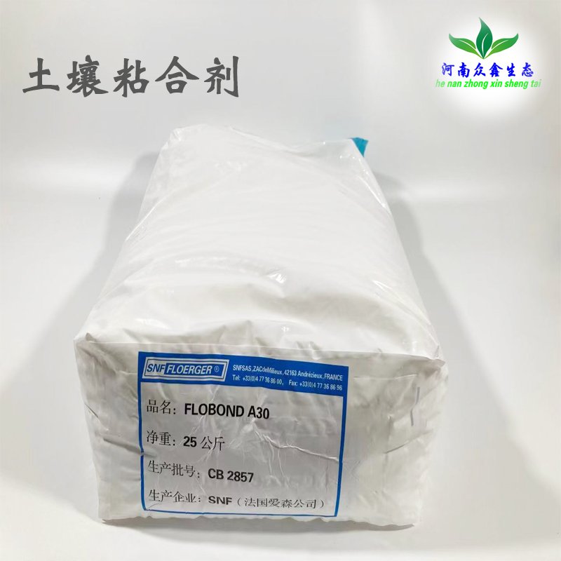 土壤粘合剂是一种高分子聚合而成的一种水溶性有机类土壤调理剂(又名胶粉、保土剂、土壤保墒剂、水土保持剂、土壤团粒剂、)。属于人工合成的高分子长链聚合物,分解物为水、氮气,对环境无害。因其具有较强的沉降和絮凝土壤粒子,在土壤中形成良好的团粒结构,因此构成抗冲刷、防渗漏的载体。主要可用于土壤改良、绿化喷播、植树造林等。具有防止地表径流造成的土壤流失、提高土壤渗透力、保土保肥、缓解和调节土壤水分蒸发等特点。