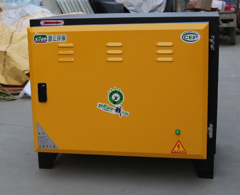 高碑店市馨云环保设备有限公司生产的油烟净化器净化流程油烟由风机吸入高压静电油烟净化器,当气流进入高压静电..