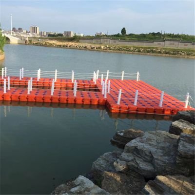 塑料浮箱是采用高分子聚乙烯材料,辅以抗老化,抗腐蚀,抗紫外线等化学物质加工生产,其产品结构合理,质量稳定,安装操作简单,环保不污染水质,适用于多种水面建筑的搭建。浮箱单个规格500*500*400mm。四个一组,刚好是一平方米,中间用蘑菇头链接,稳定牢固,四面都有耳环可用于安装挂网,拉绳等。每平方米浮力350kg,浮力大,可用在一般的水上载体。
