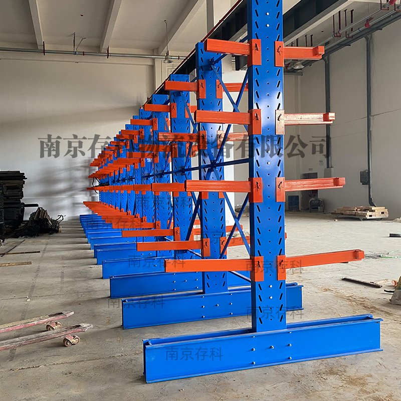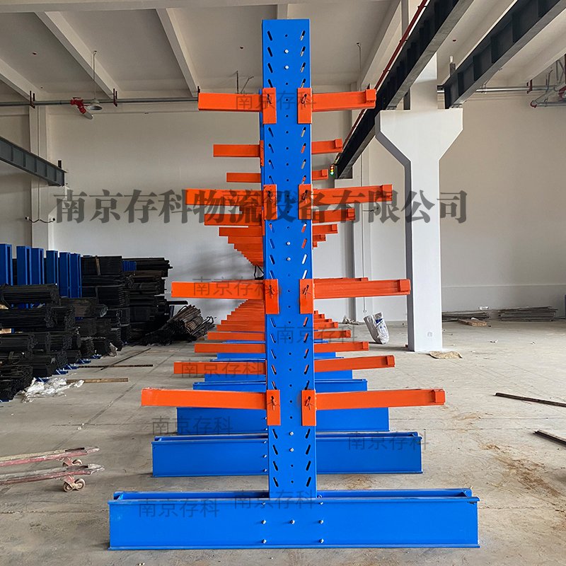 悬臂式货架适用于存放长物料、环型物料、板材、管材及不规则货物。悬臂式货架立柱多采用H型钢或冷轧型钢,悬臂采用方管、冷轧型钢或H型钢,悬臂与立柱间采用插接式或螺栓连接式,底座与立柱间采用螺栓连接式,底座采用冷轧型钢或H型钢。货物存取由叉车、行车或人工进行。