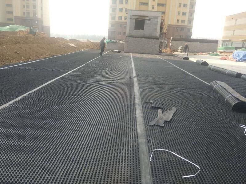 车库顶层1000g塑料排水板铺设于防水卷材上方,主要起到把多余的水及时排出的作用,车库顶板排水板属于塑料..