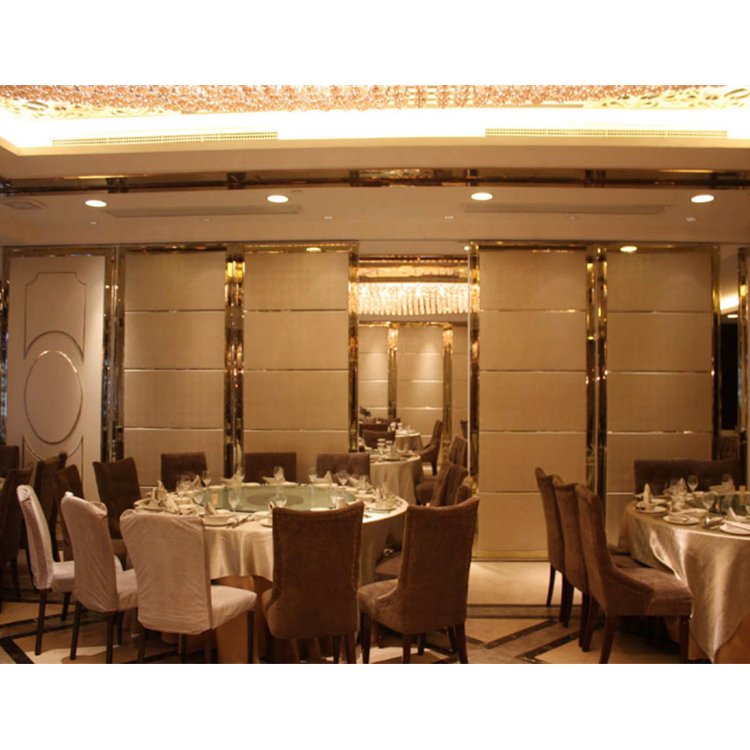 酒店折叠式活动屏风 推拉式隔断推拉门是由多片隔扇组成的可沿轨道推移的屏风。 高度视需要而定,构造和拼装式活动屏风用的隔扇相同。这种屏风有下滑式和上滑式两种。下滑式的,下部装有滑轮,顶棚和地面装有槽式导轨,适用于自重较大的活动屏风。酒店折叠式活动屏风 推拉式隔断推拉门的下部导轨藏于地面,容易积灰堵塞,且影响地面的使用和美观,采用不多。上滑式的,每片隔扇的上部安装两组可转动方向的滑轮,沿轨道单方向移动。这些产品可安装平面为L字形、T字形或十字形的轨道,使隔扇可,酒店折叠式活动屏风 推拉式隔断推拉门中室内空间資源十分关键,拥有那样一个别具一格的移动屏风折叠门能够机敏的应用比较有限的室内空间,将室内空间变为人们应用起來更便捷的方式,是酒店餐厅中不可或缺的可得优助手。