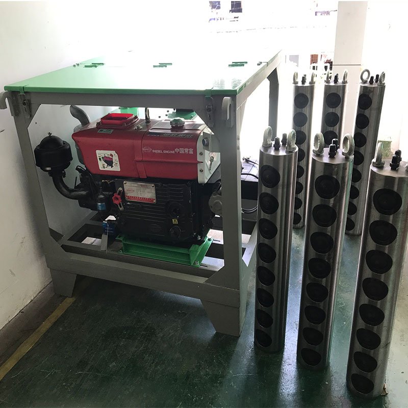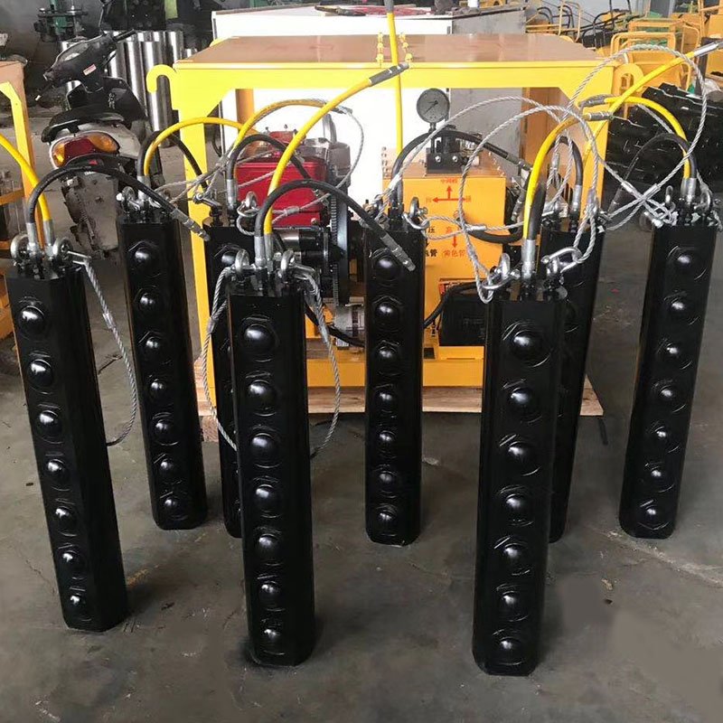 劈裂棒是由一条油缸,3-10个活塞,多个密封件,多根高压油管几大部件组成。分为一根进油管,一根回油管。进油时劈裂棒的活塞会伸出,这就是一个工作过程,也就是岩石破裂的时间,140-180MP高压油泵站输出的作用力作用于被分裂体孔壁,岩石在很大的作用力下按预定方向裂开。