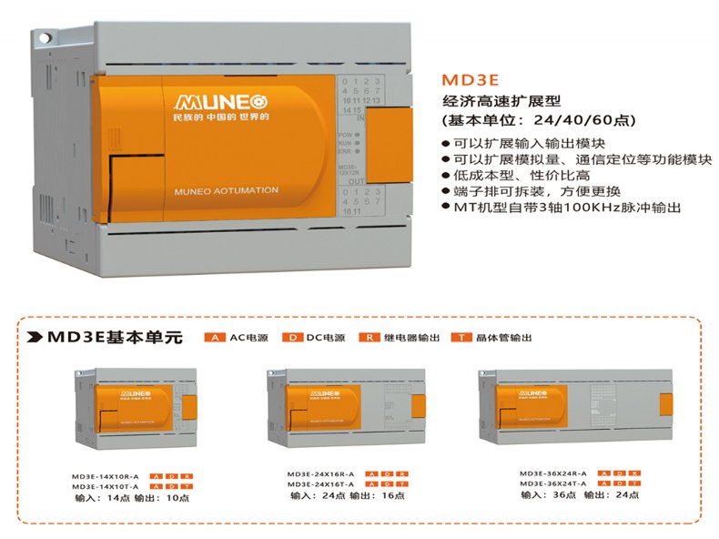 MUNEO木鸟PLC可编程控制器MD3E-14/24/40/60R/T-A全兼容三菱FX3GA系列