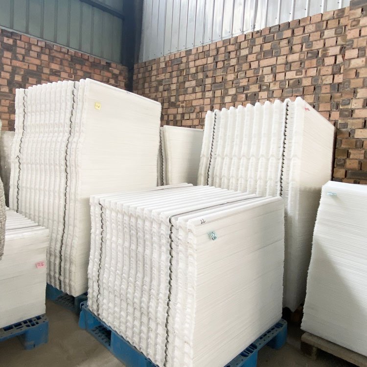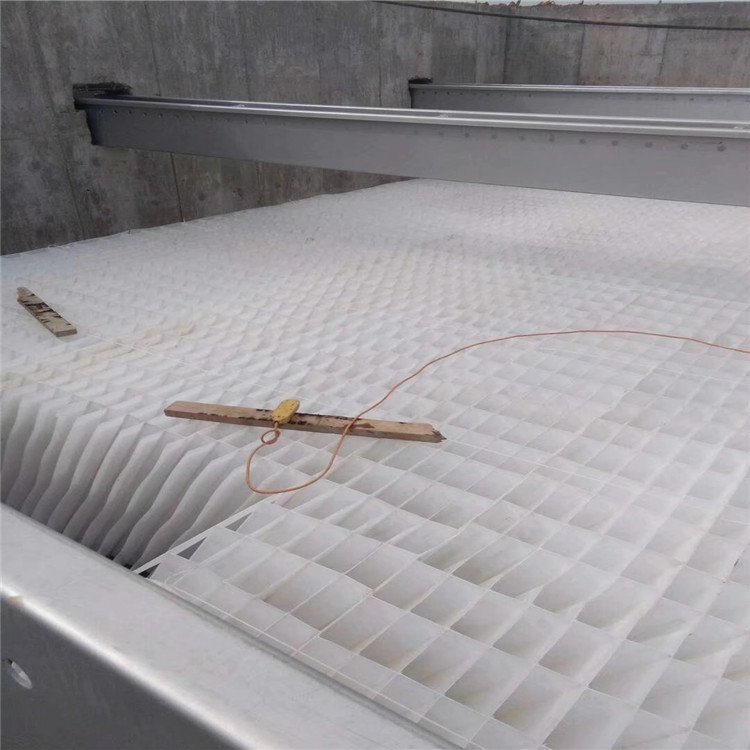将烫接后的填料单元在填料支架上部自左向右进行组装。始终保持60°角不变,每一单元顺序组装时要适当压紧,做到紧凑 平整、无裂缝。组装到*右侧时若尺寸不是正合适,需要根据尺寸用散片斜管填料烫接后进行组装直至全部到位。