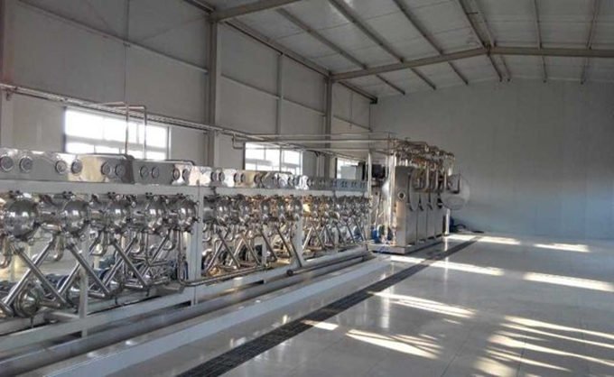 浓缩精制是整条生产线重要的单元,淀粉的品质质量在旋流精制单元得到保障。通过物理的方法将淀粉浆中的杂质彻底出去,使其不影响淀粉产品的质量。 从一级离心筛出来的淀粉浆进入16级浓缩旋流洗涤单元,工艺水从旋流站的另外一端泵入以逆流的方式对淀粉进行洗涤。整个旋流站可以分为三个部分,首先淀粉浆通过浓缩旋流站进行脱汁浓缩,浓缩后的淀粉乳进入后面13级洗涤单元,而从溢流出来的细胞液则进入两级回收旋流站对其中所含的淀粉进行回收。从旋流站溢流出来的含大量纤维杂质的废液绝大部分直接外排,很少的一部分仍然进入提取单元的工艺水系统中。从旋流站出来的淀粉乳被泵送到一个带搅拌器的不锈钢淀粉乳储存罐中。 洁净的工艺水从旋流站尾级加入,与淀粉乳混合洗涤,然后溢流又与前一级淀粉乳混合洗涤分离,如此一级一级逆流洗涤使得纤维和细胞液等都随水排出旋流站。采取十三级洗涤能够保证旋流站的洗涤,更好去除淀粉乳中所含的纤维、蛋白等杂质,保证了从旋流站出来的淀粉乳中没有杂质。以此可以保证生产出的淀粉的各项指标都符合标准。