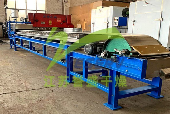 通过造粒机布料器将来自上游工序热融态物料均匀地铺设于其下方匀速移动的钢带上,钢带下方设置有连续喷淋、冷却装置,迫使钢带上方的物料在移动过程得以迅速冷却、固化,从而达到成型造粒的目的。依据物性和使用要求,其布料器可选择断续滴下、连续拉条和全宽度溢流等不同形式,来满足生产半球状、条状、片状等不同形状的产品。 - 江苏誉盛干燥科技有限公司