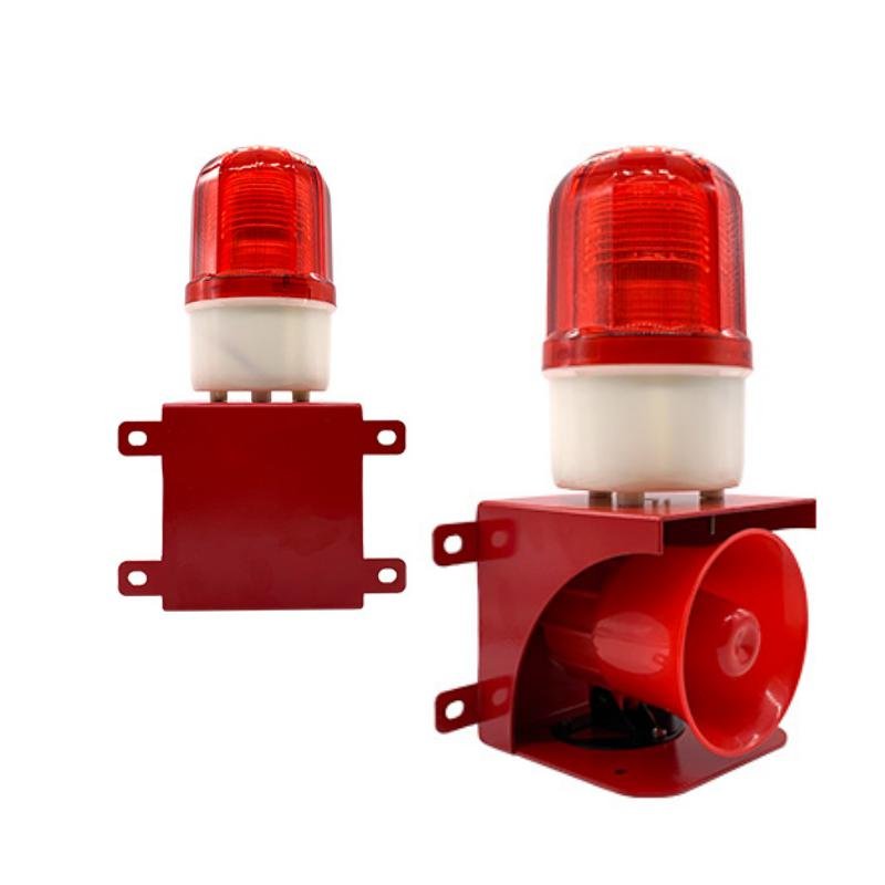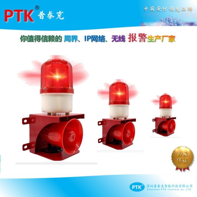 语音报警和LED闪灯报警,需要提供12V电源和网络,IP网络通讯方式,RJ45接入交换机,可以接收所有的报警信号120分贝报警声音,可免费定制语音内容,比如“警告 警告,请退出警戒线”(语音可根据需求,定制);