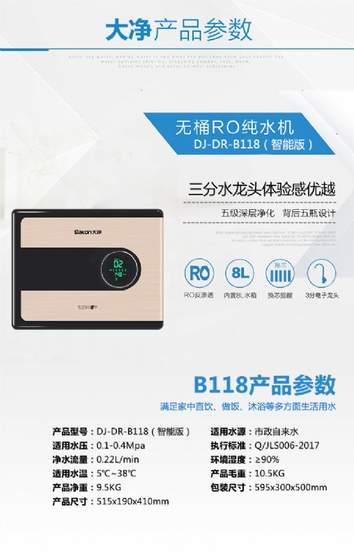 DAKON大净厨房净水器DJ-DR-B118大流量纯水机