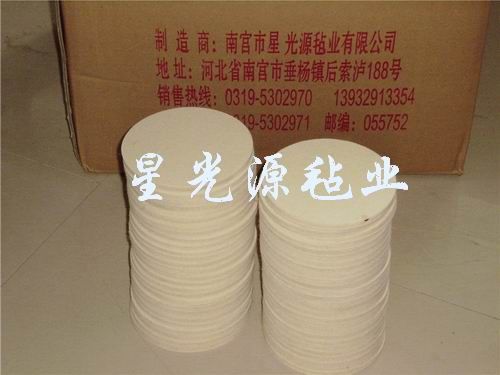 毛毡质地柔软不会刮伤面板,耐磨强度高,是理想的抛磨配套产品能够起到消痕,增亮的作用。由于羊毛毡的羊毛的鱼鳞片作用,故使毛毡生成抛光的作用,平面羊毛毡可以做成毛毡磨头包在研磨机上,再配上铁红酸水研磨效果能达到8K,也可也冲压圆片胶黏在塑料盖上,是角磨机理想的配套产品。