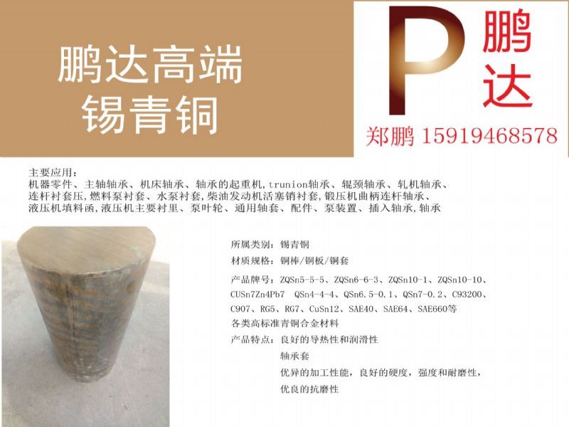 本公司生产高端铜材料,铝镍青铜,铝青铜,锡青铜(含锡7%以上的,不是市面上黑皮的黄铜),磷青铜。