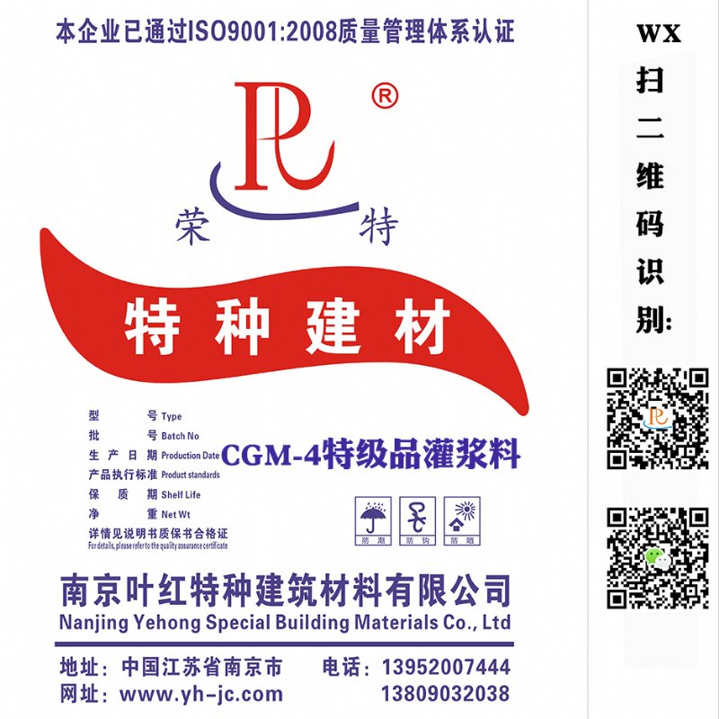 CGM高强无收缩灌浆料为南京叶红特种建筑材料有限公司(通过ISO9001:2008标准认证公司),针对中国设备基础安装市场研发的优质灌浆料系列产品,质量优良,符合JC/T986-2005标准,其主要技术性能达到或超过国际先进水平。