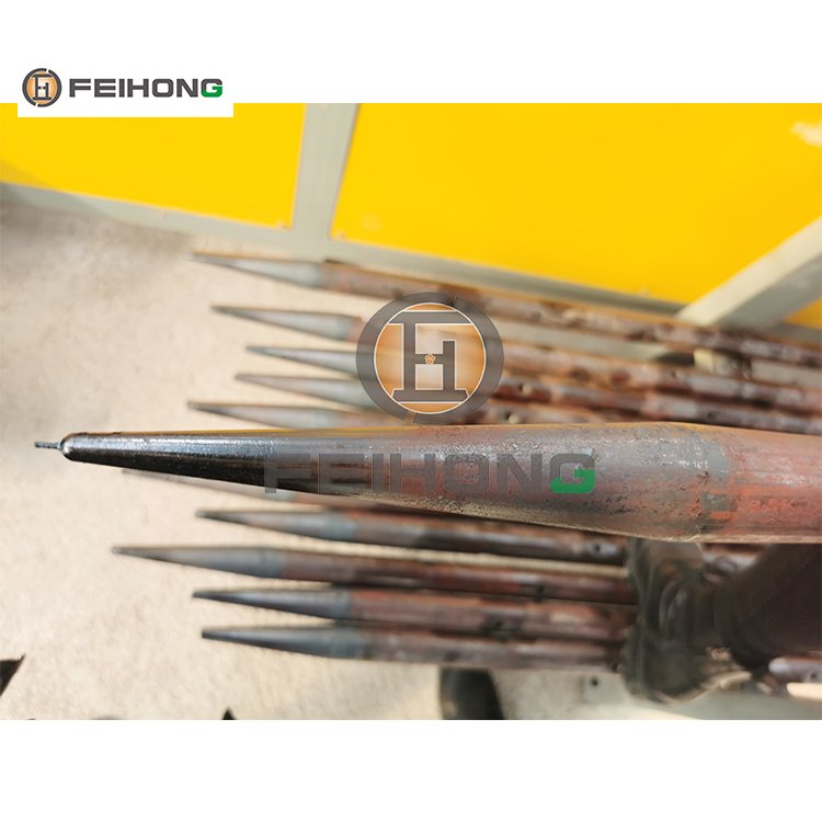 飞宏数控小导管生产线设备集中钢管打孔和缩尖工序在一体的生产线,操控台控制整个加工流程,从钢管原料到后面钢管表面打孔和前端缩尖加工完成的成品,生产线可以加工多种长度规格、注浆孔布局规格的钢管,具有生产效率高、操控自动化程度高的优点。