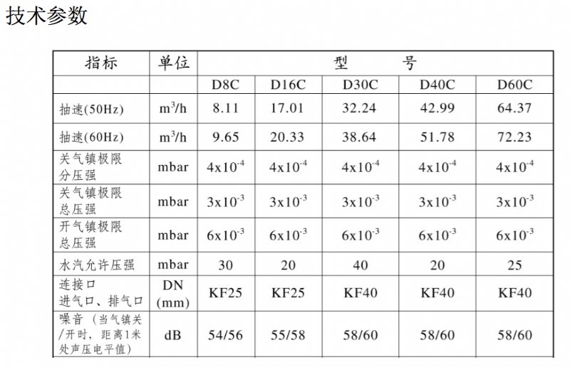 -德国莱宝D4B真空泵水蒸气允许压强为:30mbar;